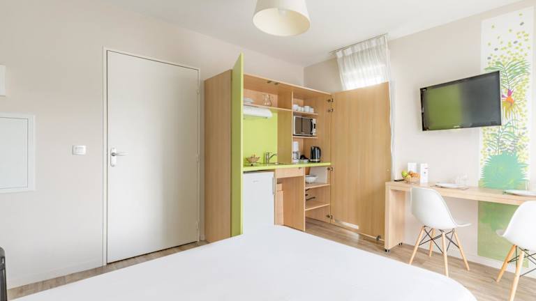 Die Apartments im Appart'City Confort Tours sind komfortabel und bieten alles, was Sie für einen angenehmen Aufenthalt benötigen. Jedes Apartment verfügt über einen Flachbild-Sat-TV und kostenfreies WLAN. Eine Küchenzeile mit Kühlschrank und Mikrowelle ist ebenfalls vorhanden, so dass Sie Ihre eigenen Mahlzeiten zubereiten können. Auf Anfrage können Sie auch einen Haartrockner erhalten.