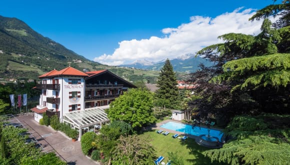Das 3-Sterne Parkhotel Tirolerhof bietet die perfekten Voraussetzungen für Besucher, die einen entspannten Wohlfühlurlaub in Algund/Lagundo verbringen möchten. Das Haus hat für die vielen, positiven Bewertungen die Prämierung HolidayCheck Quality Selection 2014 bekommen. Binnen kurzer Zeit erreichen die Besucher verschiedene Sehenswürdigkeiten, da Bahn und Bus ganz in der Nähe sind. Sie erhalten kostenlos die AlgundCard, mit der Sie jeden Bus und Regionalzug sowie einige Aufstiegsanlageninnerhalb Südtirols nützen können. Auch der Besuch von über 90 Museen ist inbegriffen. Das Hotel hat einen wunderschöne n Garten mit einer Gartensauna und einem Pool, Wohlfühlecken gibt es auch auf der Terrasse, unter der Laube und im Wintergarten. Ein besonderes Highlight ist die Hydrosoft Wellness-SPa in vielen Zimmern, wo Sie jederzeit und ganz privat saunieren können. Die leckeren 5-GAng-Menüs dürfen Sie sich nicht entgehen lassen.