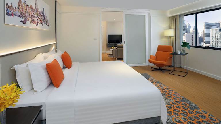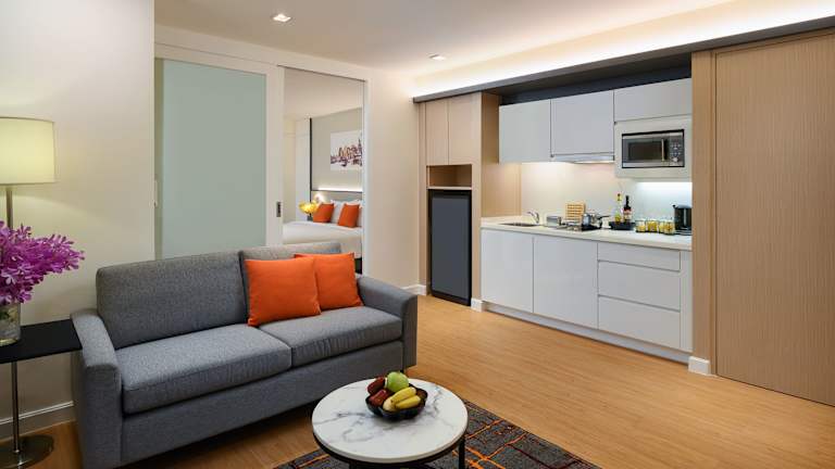 Das PARKROYAL Suites Bangkok - SHA Plus Certified ist eine ideale Unterkunft im Herzen von Bangkok, die Ihnen einen Genius-Rabatt bietet. Sie können eine pulsierende Stadt erleben und den Komfort einer voll ausgestatteten Suite mit einer Küchenzeile, einer Waschmaschine und einem Trockner genießen. Das Hotel bietet auch einen Fitnessraum, einen Pool und eine Sauna für zusätzlichen Komfort. Die Lage des Hotels ist günstig, in der Nähe von Einkaufszentren, Restaurants und Sehenswürdigkeiten. Buchen Sie jetzt Ihren Aufenthalt und profitieren Sie von den Annehmlichkeiten des PARKROYAL Suites Bangkok - SHA Plus Certified.