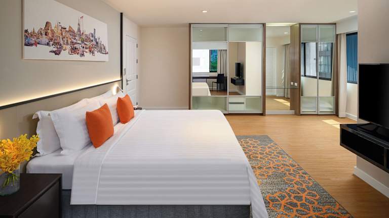 Das PARKROYAL Suites Bangkok - SHA Plus Certified bietet geräumige Studios und Suiten mit 1 oder 2 Schlafzimmern, die elegant im Design mit kräftigen Erdtönen gestaltet sind. Die Unterkünfte verfügen über eine komplett ausgestattete Küche, einschließlich einer Waschmaschine und eines Wäschetrockners. Ein Home-Entertainment-System und ein Flachbild-TV sorgen für Unterhaltung. Während Ihres Aufenthalts stehen Ihnen WLAN und ein Zimmerservice zur Verfügung. Ein kostenloser Parkplatz ist ebenfalls vorhanden.