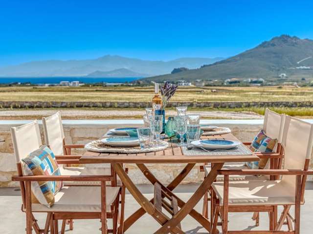 Paros Sea View Eco - Aetherian Ciel Villas, Alia bietet eine Unterkunft mit Bergblick und einer außergewöhnlichen Ausstattung. Die klimatisierte Unterkunft verfügt über einen Balkon, eine Kaffeemaschine, kostenloses WLAN und einen Privatparkplatz. Es sind keine Junggesellen-/Junggesellinnenabschiede erlaubt. Die Unterkunft wird von einem privaten Gastgeber geführt. Das Mindestalter für den Check-in beträgt 18 Jahre.