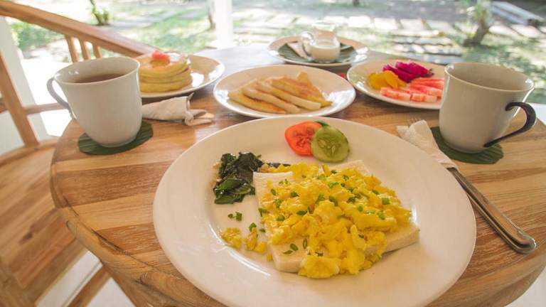 Eine großartige Wahl für diejenigen, die sich entspannen möchten. Das Hotel besteht aus zwei großen Häusern. Das Cottage ist offen für ein kleines Gartenbad. Sie können ein Bad mit Blick auf die Palmen und die Vegetation nehmen. Die Ehe, die dieses Resort führt, ist entzückend! Sie sprechen nicht viel Englisch, aber es kann alles erledigt werden. Leckeres Frühstück - ich empfehle Bananenpfannkuchen. Sie können dort einen Roller zu einem guten Preis mieten. Sie bieten auch einen Wäscheservice an - meine Wäsche war…