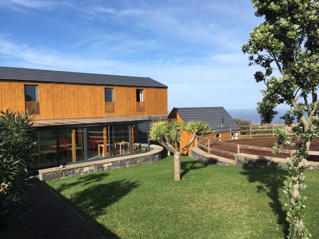 Die Einrichtungen sind schnell umrissen: 4 Lodge-Doppelzimmer und ein Garten-Loft, zurückhaltend elegant mit viel Holz gestaltet und komfortabel ausgestattet. Die geräumigen Lodge Zimmer mit außergewöhnlichem Blick auf den Vulkan -Pico-, perfekt um morgens die Sonne über der Nachbarinsel São Jorge aufgehen zu sehen. Du überblickest die gesamte Anlage mit den stolzen Lusitano Pferden und dem Atlantischen Ozean mit seinen Inseln. Du fühlst dich sofort entspannt in deinem Zimmer, ausgestattet mit natürlich gestalteten Möbeln und einem gemütlichen Kingsize-Bett. Garantierte Nachtruhe. Die Bettwäsche weich, die Kissen prall und sobald Du die Meeresluft einatmest, wird es schwer fallen wieder aufzustehen. Das Garden Loft bietet dir den Platz und die Privatsphäre, um dich völlig frei zu fühlen. Genieße ein geräumiges Loft und einen Garten, der nur privat zugänglich ist. Es ist mit schönen Möbeln, einem luxuriös ausgestatteten Badezimmer und einem kleinen Lounge-Bereich ausgestattet. Tolle Aussicht auf den Atlantik und das malerische kleine Dorf. Sitze vor deinem Kamin und geniesse.