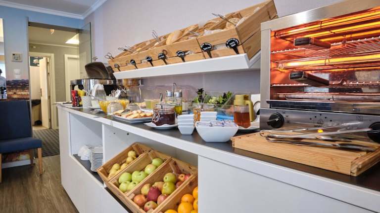Beginnen Sie Ihren Tag mit einem köstlichen kontinentalen Frühstücksbuffet, das im Frühstücksraum des Hotels serviert wird. Genießen Sie regionale Produkte und starten Sie gestärkt in den Tag. Bei schönem Wetter können Sie auch die Außenterrasse nutzen und dort entspannen. In der Umgebung finden Sie auch eine Vielzahl von Restaurants, die verschiedene kulinarische Köstlichkeiten anbieten.