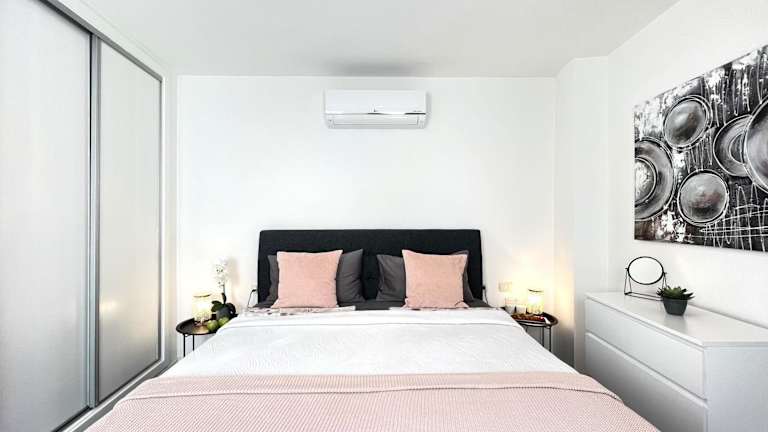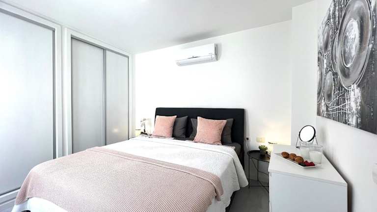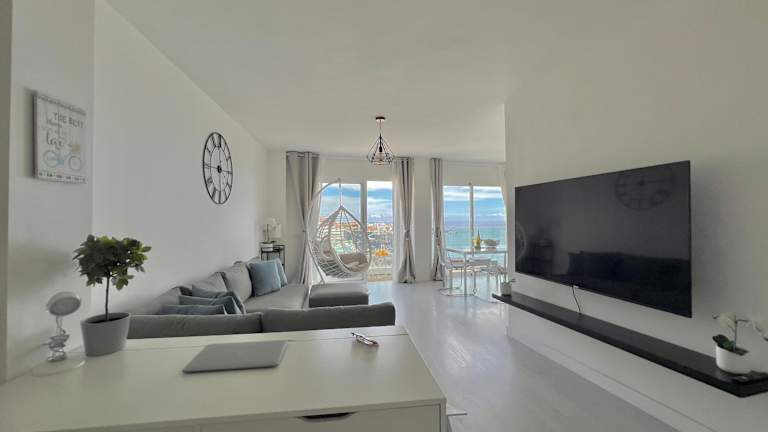 Die Ferienwohnung umfasst 3 Schlafzimmer, ein Wohnzimmer und 2 Badezimmer mit Bidet und Dusche. Handtücher und Bettwäsche werden bereitgestellt. Aus der Unterkunft genießen die Gäste Meer- und Bergblick.