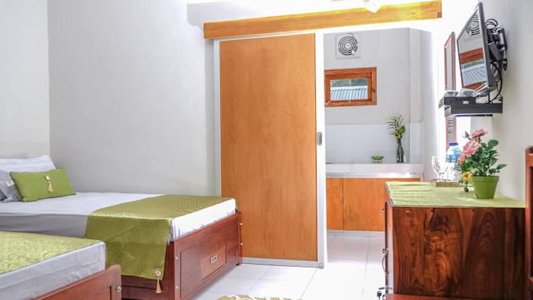 Die Zimmer im Pavilla Labuan Bajo sind klimatisiert und verfügen über ein eigenes Badezimmer sowie eine Küchenzeile. Sie sind mit einem Doppelbett oder einem Queensize-Bett ausgestattet und bieten die Möglichkeit, Zustellbetten zu ordern. Jedes Zimmer ist mit einem Schreibtisch, einem Geschirrspüler, einem Telefon, einem TV-Gerät und kostenlosem WLAN ausgestattet. Das Badezimmer ist mit einer Dusche und einem Haartrockner ausgestattet. Familien- und Nichtraucherzimmer sind ebenfalls verfügbar.