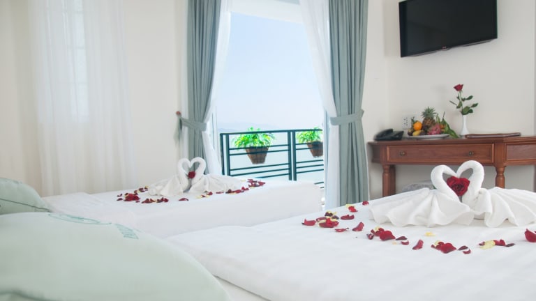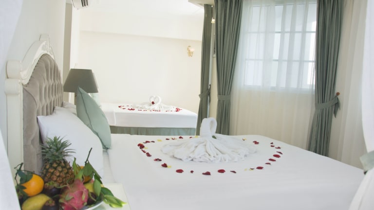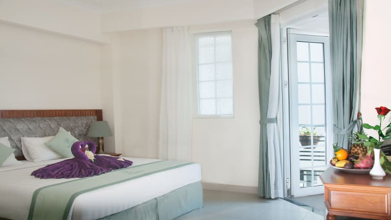 Das Pavillon Garden Hotel Nha Trang verfügt über 34 Zimmer, die sich über 12 Etagen verteilen. Die Zimmer sind über einen Aufzug erreichbar und bieten modernen Komfort. Zur Ausstattung gehören Klimaanlage, Kabel-TV und ein gemütlicher Sitzbereich. Einige Zimmer bieten zudem einen Balkon mit Blick auf die umliegende Stadt. Das Hotel bietet auch einen kostenlosen frühen Check-in um 12:00 Uhr.