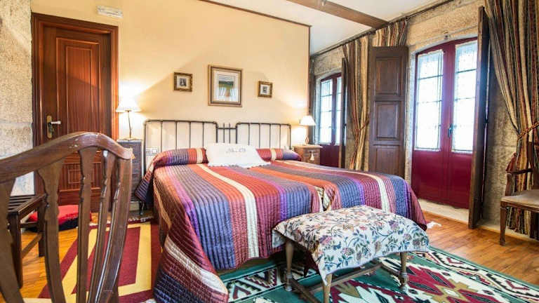 Die Zimmer im Pazo Da Fraga sind im charmanten Landhausstil eingerichtet und verfügen über Holzböden, eine Minibar und einen TV. Jedes Zimmer hat ein eigenes Bad mit einer Badewanne und kostenfreien Pflegeprodukten. Die gemütliche Atmosphäre der Zimmer lädt zum Entspannen ein und bietet einen angenehmen Rückzugsort nach einem ereignisreichen Tag.