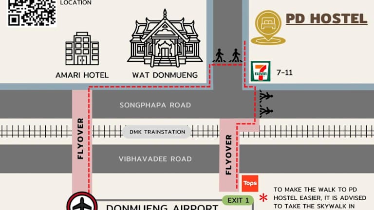 Das PD Hostel liegt nur 9,2 km vom IMPACT Muang Thong Thani und 16 km vom Central Plaza Ladprao entfernt. Diese zentrale Lage bietet Ihnen die Möglichkeit, bequem die nahegelegenen Einkaufszentren und Veranstaltungsorte zu erkunden. Der internationale Flughafen Bangkok-Don Mueang ist nur 6 km entfernt, so dass Sie keine lange Anreise haben.