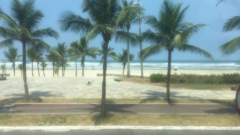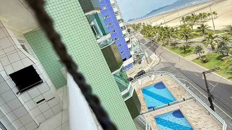 Das Apto. (pé na areia) com Churrasqueira na sacada liegt direkt am Strand in Praia Grande. Die Lage des Apartments ermöglicht es Ihnen, Aktivitäten wie Angeln, Wandern und Tischtennis in unmittelbarer Nähe zu genießen. In der Umgebung gibt es auch verschiedene Restaurants und Geschäfte, die zu Fuß erreichbar sind. Guarujá ist nur 26 km entfernt und Santos erreichen Sie nach 20 km. Der Flughafen Sao Paulo/Congonhas ist etwa 49 km entfernt.