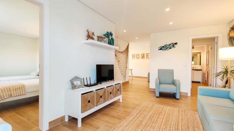 Die Ferienwohnung umfasst zwei Schlafzimmer, ein Wohnzimmer, eine komplett ausgestattete Küche mit Kühlschrank und Kaffeemaschine sowie ein Badezimmer mit Bidet und Dusche. Handtücher und Bettwäsche werden bereitgestellt.
