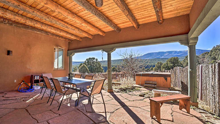 Das Peaceful New Mexico Retreat with Panoramic Mtn Views bietet Ihnen einen Whirlpool, in dem Sie sich nach einem aktiven Tag entspannen können. Genießen Sie die Ruhe und Schönheit des Gartens und lassen Sie den Alltagsstress hinter sich. Nutzen Sie das kostenfreie WLAN, um mit Ihren Lieben in Kontakt zu bleiben oder um lokale Ausflüge zu planen. Erkunden Sie die Umgebung und entdecken Sie die vielfältigen Freizeitmöglichkeiten, die Ihnen New Mexico bietet.