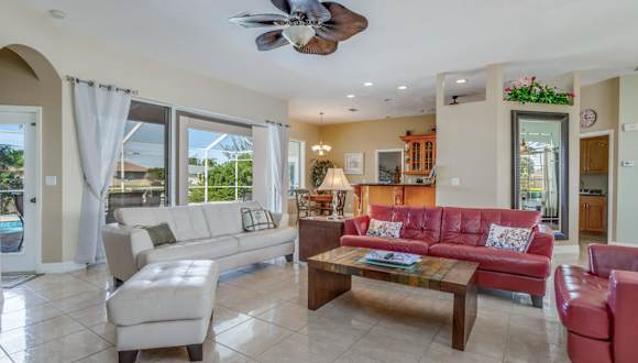 Das Peaceful Palms in Cape Coral ist ein wunderschönes Ferienhaus, das Ihnen einen erholsamen und komfortablen Aufenthalt bietet. Mit einem eigenen Pool, einem Garten und einer Terrasse mit Blick auf den Fluss können Sie hier die Ruhe und Schönheit der Umgebung genießen. Das Haus verfügt über 4 Schlafzimmer, 3 Badezimmer und eine voll ausgestattete Küche, die Ihren Aufenthalt angenehm und bequem machen. Mit kostenfreiem WLAN und Kabel-TV bleiben Sie immer verbunden. Entdecken Sie die Sehenswürdigkeiten von Cape Coral und der Umgebung, wie das Fischerdorf und den Leuchtturm von Sanibel. Der internationale Flughafen Southwest Florida ist auch nur eine kurze Fahrt entfernt.