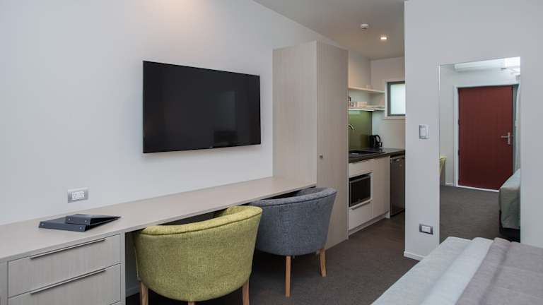 Im Pedlars Motel haben Sie die Wahl zwischen stilvollen Deluxe Studios und voll ausgestatteten Suiten. Die Zimmer verfügen über einen 55-Zoll-Flachbild-TV mit einer großen Auswahl an Satellitenkanälen. Zusätzlich finden Sie in den Zimmern Tee- und Kaffeezubehör sowie ein eigenes Badezimmer mit ebenerdiger Dusche. Die Suiten bieten zudem einen gemütlichen Sitzbereich, in dem Sie sich entspannen können. Der Zimmerservice steht Ihnen gerne zur Verfügung, um Ihre Bestellungen entgegenzunehmen und Ihnen einen angenehmen Aufenthalt zu ermöglichen.
