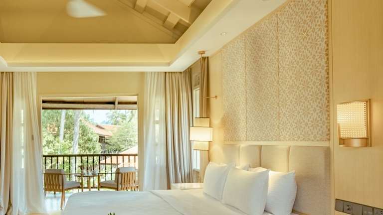 Es stehen verschiedene Zimmertypen zur Verfügung, darunter Doppelzimmer und Familienzimmer mit Meer- oder Gartenblick. Die Zimmer sind individuell regulierbar klimatisiert und bieten Annehmlichkeiten wie WLAN, Flachbild-TV, Safe und eine Minibar. Jedes Zimmer verfügt über ein eigenes Bad mit Dusche und Badewanne, sowie über einen Balkon oder eine Terrasse mit Sitzgelegenheiten.