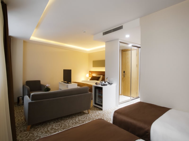 Die Zimmer im Peninsula Galata Hotel sind elegant und modern eingerichtet und verfügen über kostenfreies WLAN, einen Flachbild-Sat-TV und eine gut ausgestattete Minibar. Ein Wasserkocher mit Kaffee- und Teezubehör ist ebenfalls vorhanden. Einige der Suiten bieten zudem einen Balkon.