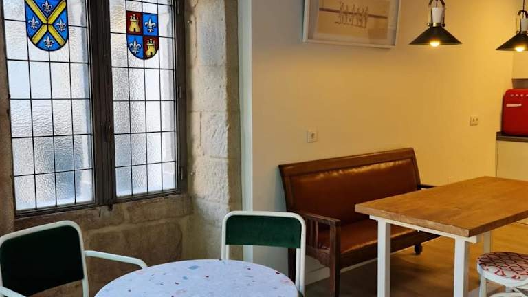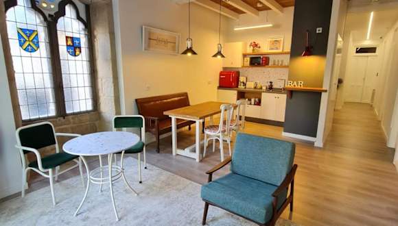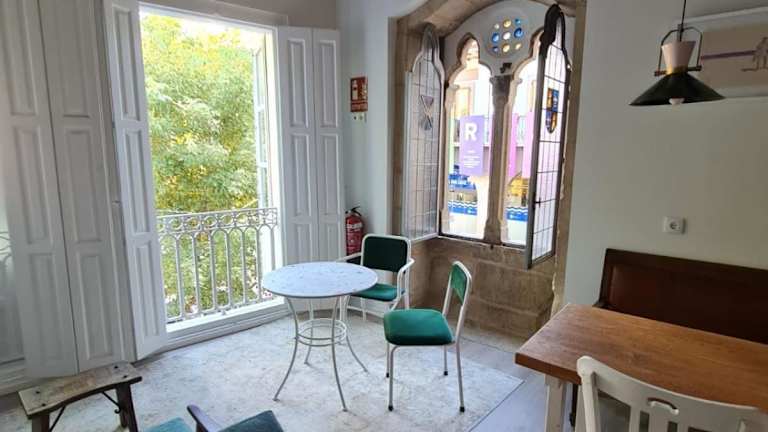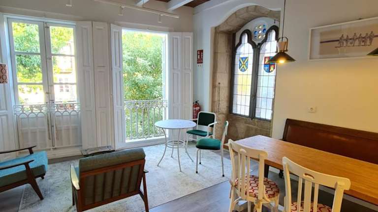Sehr zentral gelegen, schöne Zimmer in historischem Gebäude - unser Zimmer hatte Fenster zu lebhaftem Platz mit gut besuchter Bar, bei geschlossenem schalldichten Fenster war das aber kein Problem. Gemeinschaftsraum mit Kühlschrank und Kaffemaschine. Alles in allem sehr angenehmer Aufenthalt auf Jakobsweg in Nordportugal und Galicien.