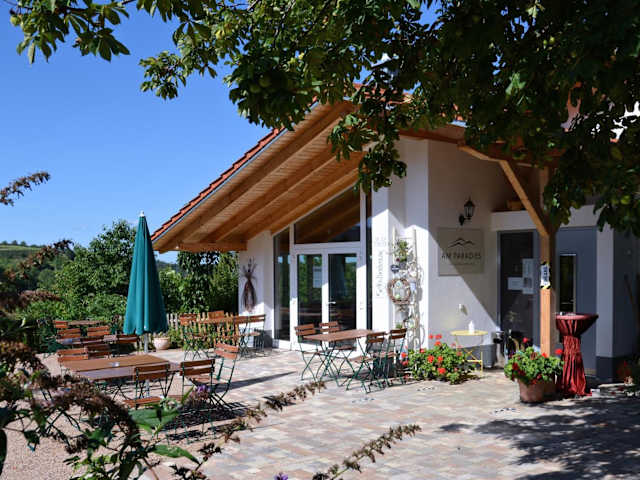 In der Pension Am Paradies erwartet Sie ein gemütliches Café, in dem Sie hausgemachten Kuchen und regionale Weine probieren können. Starten Sie Ihren Tag mit einem leckeren Frühstück und lassen Sie sich von den kulinarischen Köstlichkeiten verwöhnen.