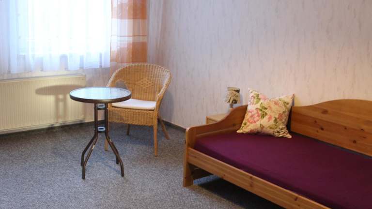In der Pension wird ein Frühstück in Buffetform angeboten. Es sind keine weiteren Verpflegungsmöglichkeiten angegeben.