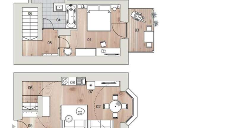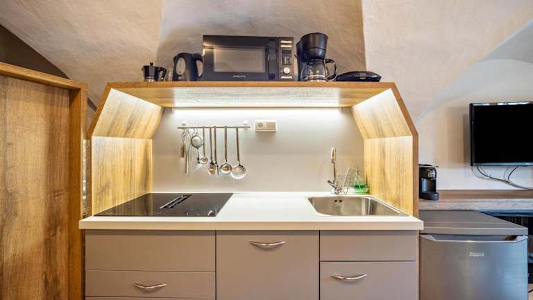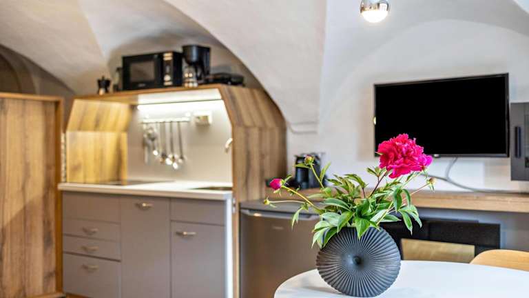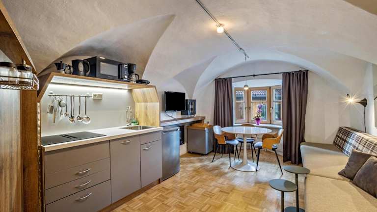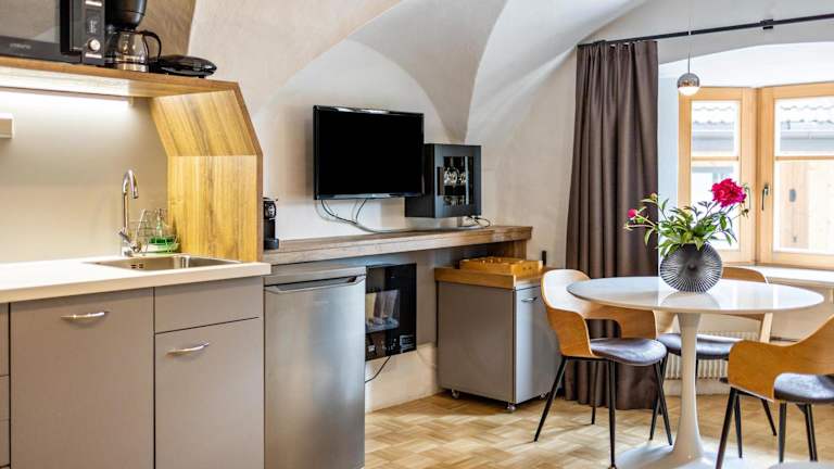 Die Wohneinheiten in der Residence Grünbacher sind mit einer Terrasse ausgestattet, von der aus man eine Aussicht auf die umliegenden Berge hat. Jede Unterkunft besitzt eine Küche, die mit einem Kühlschrank, einem Geschirrspüler, einer Mikrowelle, einer Herdplatte, einem Toaster, einer Kaffeemaschine und einem Wasserkocher ausgestattet ist. Des Weiteren ist ein eigenes Badezimmer vorhanden.
