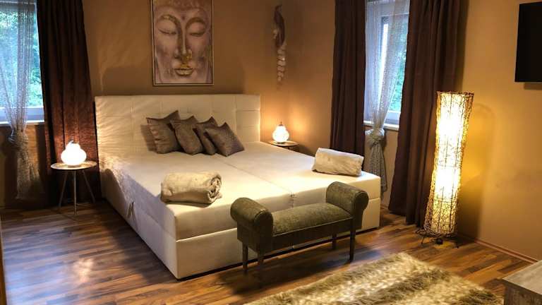 In der Pension Ba-Bett's können Sie sich im schönen Garten entspannen und die Natur genießen. Die Unterkunft bietet auch kostenfreie Privatparkplätze für die Gäste. In der Umgebung gibt es zahlreiche Möglichkeiten für Freizeitaktivitäten wie Wandern, Radfahren und Sightseeing. Das Kongresszentrum Nürnberg ist ebenfalls in der Nähe und bietet interessante Veranstaltungen und Ausstellungen.