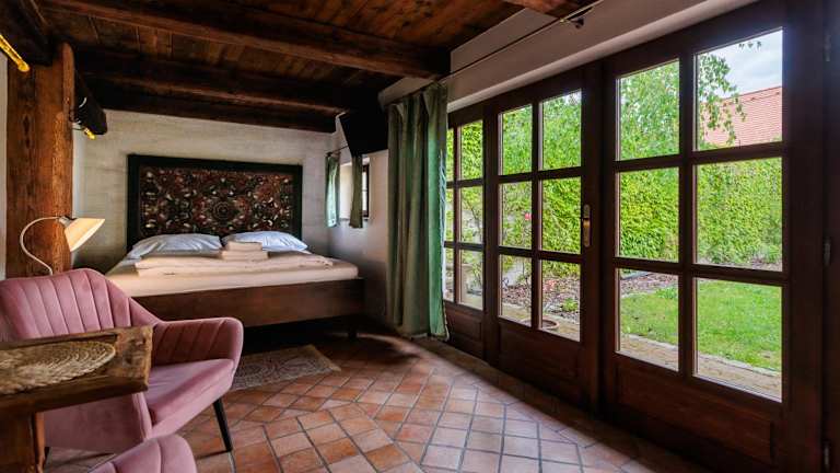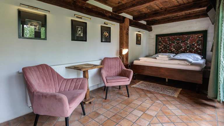 Die Zimmer im Hotel Barokni Spejchar sind elegant eingerichtet und bieten moderne Annehmlichkeiten in einer gemütlichen Atmosphäre. Die Zimmer verfügen über flauschige Teppichböden und bieten einen herrlichen Blick auf die umliegende Parklandschaft. Die zeitgenössischen Oberflächen der Zimmer harmonieren perfekt mit den massiven Holzbalken und anderen Details im Landhausstil, die dem Raum eine rustikale Note verleihen. Kostenloses WLAN steht Ihnen ebenfalls zur Verfügung.