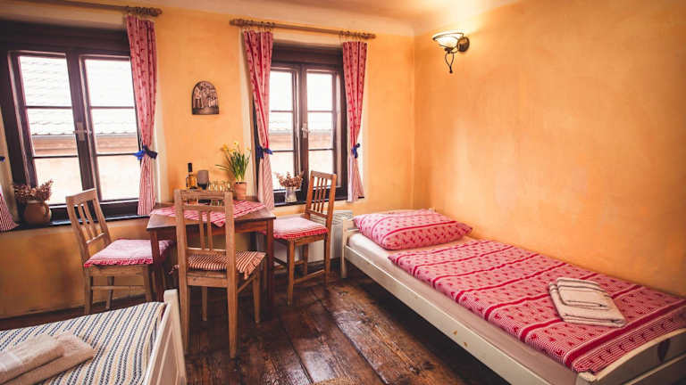 Die Zimmer in der Pension Cert a Kaca sind traditionell eingerichtet und verfügen über ein eigenes Bad sowie Holzböden. Auf Anfrage können Ihnen ein Haartrockner und ein Bügeleisen zur Verfügung gestellt werden. Das kostenfreie WLAN ermöglicht es Ihnen, mit Ihren Lieben in Kontakt zu bleiben oder Ihre Reisepläne zu organisieren.