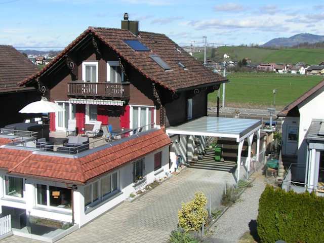 Die Pension Chalet Charme befindet sich in Siebnen, nur 22 km vom Kloster Einsiedeln entfernt. Die Lage ist ideal für Ausflüge in die Umgebung, mit Attraktionen wie dem Museum Rietberg, dem Fraumünster und dem Grossmünster, die alle in einer Entfernung von etwa 43-44 km liegen. Siebnen selbst bietet auch Möglichkeiten zur Freizeitgestaltung, wie Wandern, Skifahren und Radfahren. Der Flughafen Zürich ist etwa 54 km von der Unterkunft entfernt.