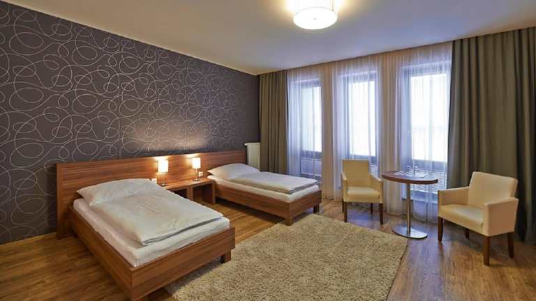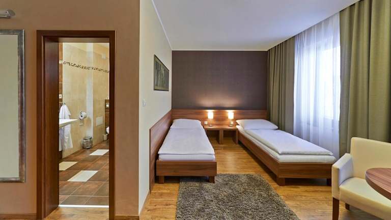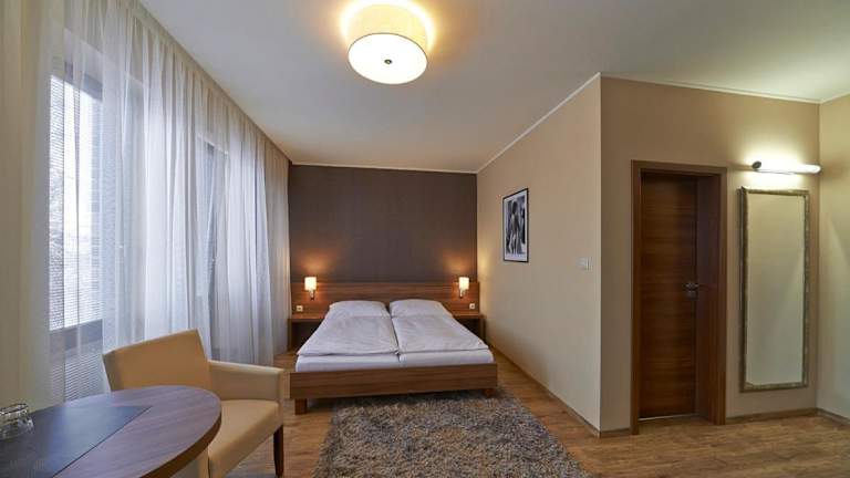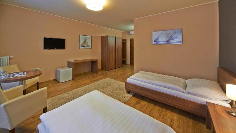 Die Penzion Club bietet geräumige und klimatisierte Zimmer, die Ihnen einen komfortablen Aufenthalt bieten. Jedes Zimmer verfügt über ein eigenes Bad, einen Flachbild-TV mit Sat-Kanälen, eine Minibar und einen Kühlschrank. Genießen Sie den Komfort und die Annehmlichkeiten dieser gut ausgestatteten Zimmer.