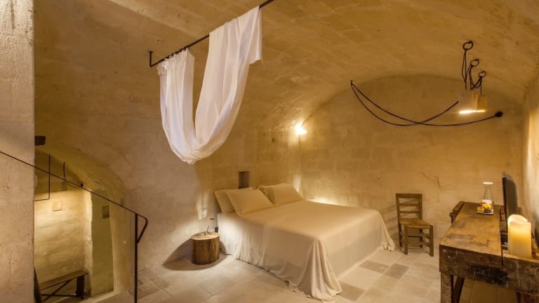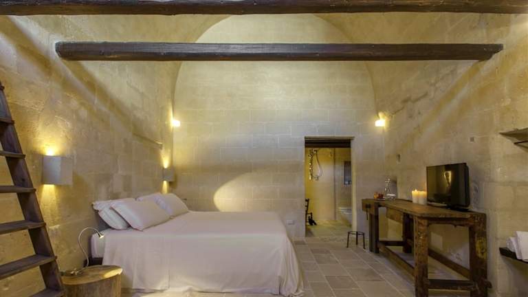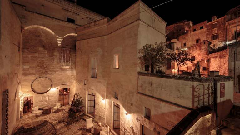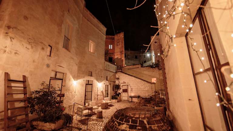 Das Corte San Pietro in Matera ist eine einzigartige Unterkunft in einem historischen Steinhaus, das geschmackvoll renoviert wurde. Die Zimmer sind elegant eingerichtet und verfügen über handgeschnitzte Holzelemente und Steinelemente. Genießen Sie den Blick auf den Innenhof und das köstliche Frühstück im Sommer. Das Hotel bietet auch einen Shuttleservice, Fahrradverleih und Tourenschalter für Ihre Bequemlichkeit. Die Lage des Hotels ist ideal, um die UNESCO-geschützte Stadt Matera Sassi und die umliegenden Naturschutzgebiete zu erkunden.
