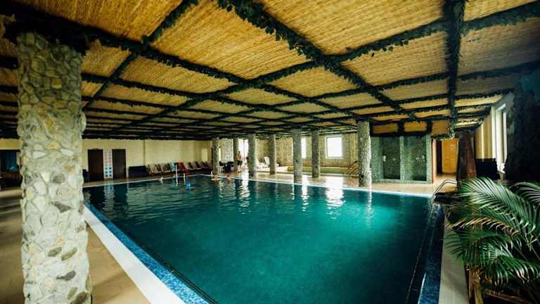 Die Pension Domeniul Regilor bietet Ihnen eine ruhige und ländliche Umgebung, nur 20 km von Cluj-Napoca entfernt. Genießen Sie die traditionelle rumänische Küche, kostenfreies WLAN und die Möglichkeit, einen kleinen Bauernhof zu erkunden. Entspannen Sie im Wellnesscenter mit Innenpool, Sauna, Infrarotkabine, Eisbrunnen und Dampfbad. Die Zimmer sind komfortabel und verfügen über Kabel-TV und ein eigenes Bad. Das Restaurant serviert sowohl traditionelle rumänische Spezialitäten als auch internationale Gerichte. Es gibt viele Freizeitaktivitäten wie Reiten, Angeln, Tischtennis und Billard. Die Unterkunft ist gut mit öffentlichen Verkehrsmitteln erreichbar und in der Nähe finden Sie Sehenswürdigkeiten wie das Salzbergwerk von Turda.