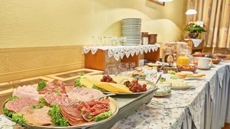Jeden Morgen erwartet Sie im Hotel-Pension Elfi ein reichhaltiges Frühstücksbuffet, das Ihnen einen energiegeladenen Start in den Tag ermöglicht. Im gemütlichen Frühstücksraum können Sie in entspannter Atmosphäre den Tag beginnen. Abends lädt die Lounge mit Bar zum Verweilen und Entspannen ein.