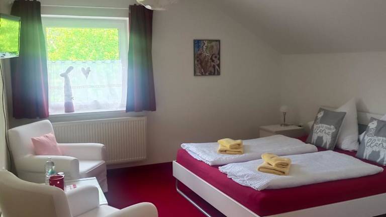 Die Zimmer in der Pension Eva sind mit einem Flachbild-TV und einem eigenen Badezimmer ausgestattet, das eine Dusche und einen Haartrockner umfasst. Eine Küchenzeile ist ebenfalls vorhanden und bietet einen Kühlschrank, Mikrowelle, Herdplatte, Toaster und Kaffeemaschine.