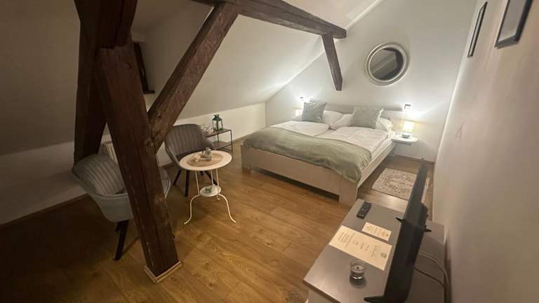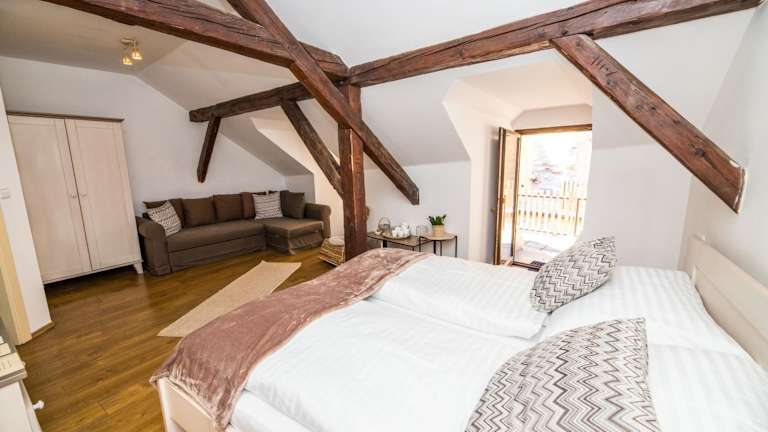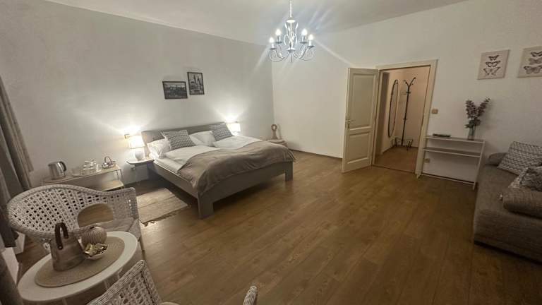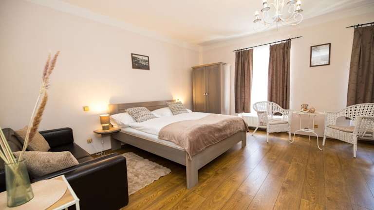 Die Pension Faber befindet sich im Zentrum von Český Krumlov, nur wenige Schritte von Sehenswürdigkeiten wie dem Schloss und dem Hauptplatz entfernt. In unmittelbarer Nähe finden Sie Restaurants, Lebensmittelgeschäfte und das rotierende Amphitheater. Die Lage der Pension ist ideal, um die charmante Stadt und ihre historischen Gebäude zu erkunden.