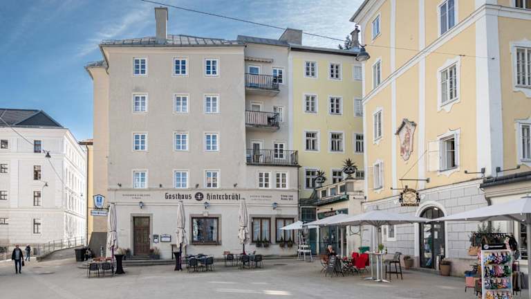 Das Gasthaus Hinterbrühl liegt in einer ruhigen Fußgängerzone im Zentrum von Salzburg. Das 800 Jahre alte Gebäude ist Teil der alten Stadtmauer und ein denkmalgeschütztes historisches Denkmal. Von hier aus können Sie bequem die Sehenswürdigkeiten der Salzburger Altstadt erkunden, wie den Mozartplatz, der nur 5 Gehminuten entfernt liegt, oder die berühmte Einkaufsmeile Getreidegasse, die Sie nach einem 10-minütigen Spaziergang erreichen. In der Umgebung des Gasthauses gibt es auch mehrere Bushaltestellen, die Ihnen eine gute Anbindung an den öffentlichen Nahverkehr bieten.