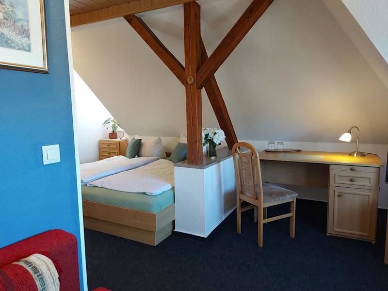 Die Zimmer in der Zur Eiche - Pension sind gemütlich und komfortabel eingerichtet. Jedes Zimmer verfügt über einen Sitzbereich, einen Flachbild-Sat-TV und ein eigenes Bad. Einige Zimmer sind mit einer Küchenzeile ausgestattet, die einen Kühlschrank enthält. Bettwäsche und Handtücher werden bereitgestellt.