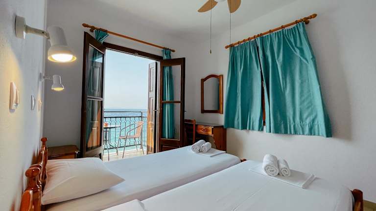 Die Zimmer der Pension Giannis Perris sind gemütlich eingerichtet und verfügen über einen möblierten Balkon, von dem aus Sie einen atemberaubenden Blick auf die Ägäis genießen können. Jedes Zimmer ist mit einem eigenen Bad mit Dusche ausgestattet. Einige Zimmer bieten auch einen Kühlschrank, um Ihre Getränke kühl zu halten. Für angenehme Temperaturen sorgt ein Ventilator. Kostenloses WLAN steht Ihnen in allen Bereichen der Pension zur Verfügung.