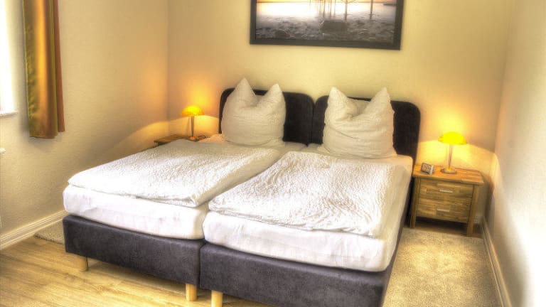 Die Zimmer verfügen über Boxspringbetten, markante Eichenmöbel, einen Flachbild-Sat-TV und ein eigenes modernes Bad. Das Familienzimmer (4 Betten) besteht aus zwei Zimmern und bietet genügend Platz für vier Personen.