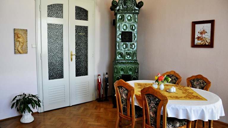 Die Pension Habermannova Vila ist eine charmante familiengeführte Unterkunft in Bludov, die von einem wunderschönen Garten mit Teich umgeben ist. Das Jugendstilgebäude bietet komfortable Zimmer mit Annehmlichkeiten wie Minibar, Klimaanlage und Sat-TV. Genießen Sie köstliche Mahlzeiten im hoteleigenen Restaurant oder auf der Terrasse. Entspannen Sie sich bei einer Partie Billard oder einer Massage im Massagesessel und lassen Sie den Abend an der Bar ausklingen. Die Pension bietet ein tägliches Frühstücksbuffet und kostenloses WLAN im gesamten Gebäude. Die Lage ist ideal, um das Thermalbad von Bludov und das Schloss Úsov zu besuchen. Das Skigebiet Kouty nad Desnou ist ebenfalls gut erreichbar. Kostenlose Parkplätze stehen vor dem Gebäude zur Verfügung.
