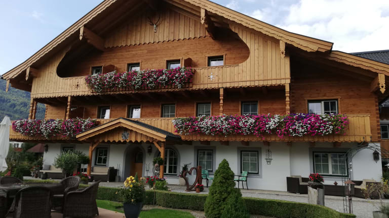 Das Hotel Haslgut in Fuschl am See bietet eine ruhige und zentrale Lage, nur wenige Schritte vom Fuschlsee entfernt. Die Zimmer sind gemütlich eingerichtet und verfügen über einen Balkon mit Blick auf den Garten. Das Frühstück wird jeden Morgen serviert und verschiedene Restaurants und ein Lebensmittelgeschäft sind in unmittelbarer Nähe. Kinder können sich auf dem Spielplatz austoben und Gäste profitieren von kostenfreiem WLAN und Parkplätzen. Zusätzlich haben sie kostenfreien Zugang zum See und die Möglichkeit, die Umgebung zu erkunden, darunter den Golfclub Hof bei Salzburg und das Skigebiet Gaißau-Hintersee.