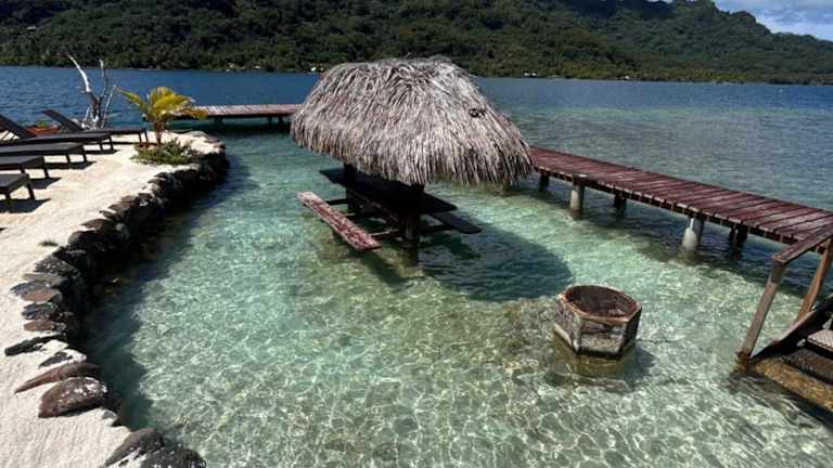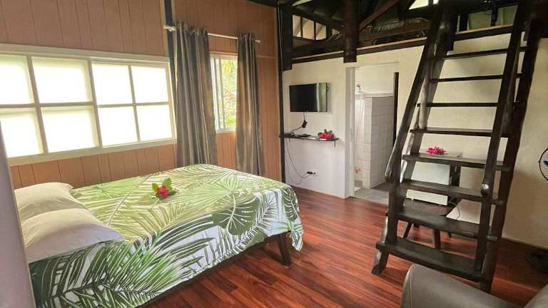 Die Pension Hibiscus Taha'a befindet sich in Vaitoare und bietet direkten Zugang zu einem eigenen Strandbereich sowie eine ruhige Gartenanlage.