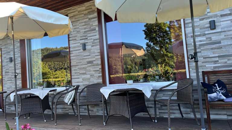 Die Pension Himmelreich befindet sich in einer ruhigen und idyllischen Lage in Glatt, in der Nähe eines Waldes. Von hier aus haben Sie einen direkten Blick auf das Wasserschloss Glatt und können die Schönheit des Dorfes in vollen Zügen genießen. Die Umgebung bietet viele Möglichkeiten für Aktivitäten im Freien, wie Wandern und Radfahren, da es zahlreiche Wander- und Radwege in unmittelbarer Nähe gibt. Die Autobahn A81, die Stuttgart und den Bodensee verbindet, ist nur eine kurze Fahrt von der Pension entfernt, so dass Sie auch problemlos andere interessante Orte in der Umgebung erreichen können.
