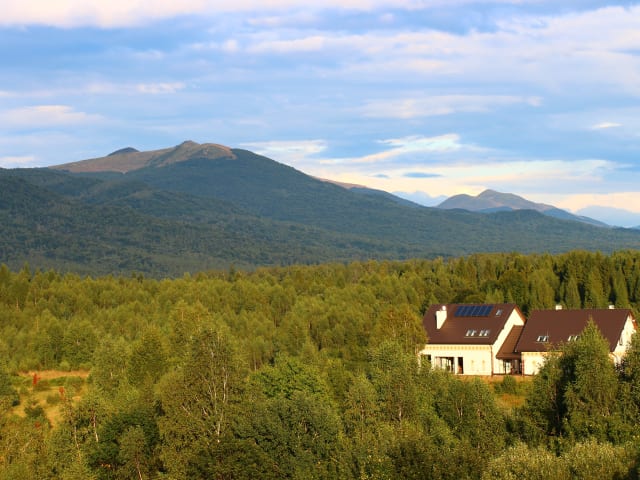 Die Pension Horb befindet sich in Strzebowiska, einem schönen Ort, von dem aus die gesamten Hohen Waldkarpaten (Bieszczady) zu sehen sind: von Smerek, über Połonina Wetlińska und Caryńska, beide Rawkas bis nach Tarnica. Die Lage unserer Pension ist vom großen Vorteil – der wunderschöne, von anderen Gebäuden entlegenene Ort, der sich auf dem Gipfel eines zwei Täler überragenden Bergrückens befindet, bietet eine herrliche Aussicht auf die ungezähmte Naturlandschaft den Waldkarpaten (Bieszczady). Derweil werden wir für Ihr Komfort und Wohlfühlen sorgen.
