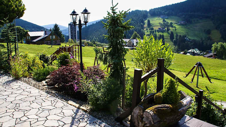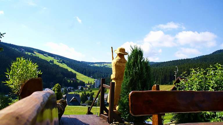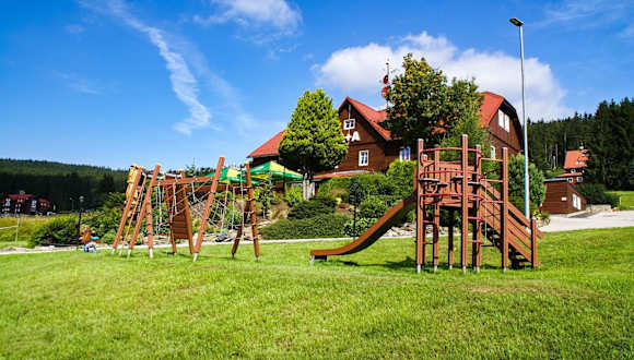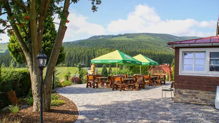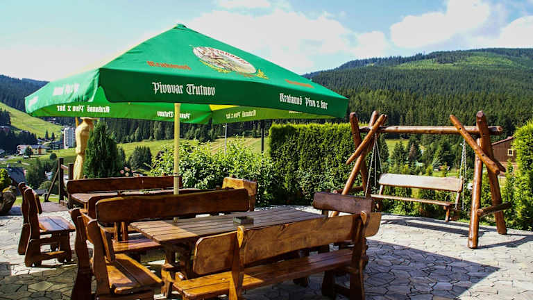 Die Horska Chata Penzion A+A befindet sich in Pec pod Sněžkou und bietet eine ideale Lage für Skifahrer. Das Hotel liegt direkt neben der Skipiste Na Velké Pláni und bietet somit einen direkten Zugang zu den Pisten. Die Seilbahn auf die Schneekoppe ist nur 1 km entfernt. In der Umgebung finden Sie auch das Stadtzentrum von Pec pod Sněžkou, ein Spa- und Fitnesscenter sowie ein Schwimmbad, die alle nur 3 Gehminuten entfernt sind.
