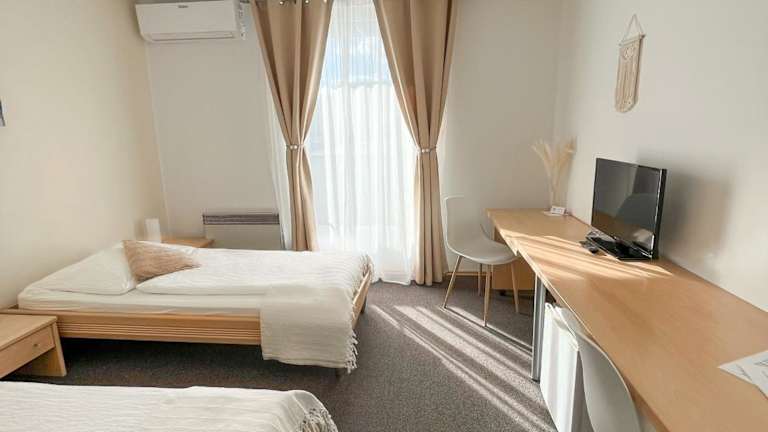 Die Pension Ingrid bietet eine ruhige Unterkunft mit kostenlosem WLAN und einem privaten Parkplatz. Die Unterkunft ist eine Nichtraucherunterkunft und bietet Annehmlichkeiten wie eine Terrasse, Klimaanlage sowie verschiedene Sicherheitsvorkehrungen. Es wird darauf hingewiesen, dass Feierlichkeiten wie Junggesellenabschiede nicht erlaubt sind und dass Gäste mindestens 18 Jahre alt sein müssen.