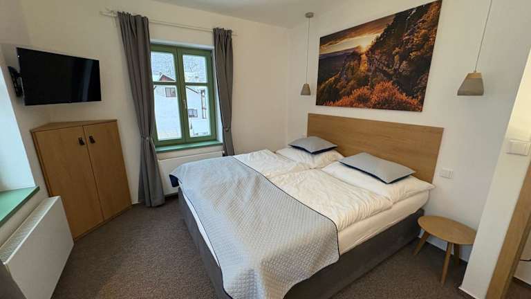 Jedes Zimmer in der Pension Jitřenka Hřensko ist mit einem Schreibtisch, einem Flachbild-TV und einem eigenen Badezimmer ausgestattet. Zur Ausstattung gehören außerdem Bettwäsche, Handtücher und ein Kühlschrank. Einige Zimmer verfügen über einen Balkon und bieten einen Blick auf die Berge. Im Rezeptionsbereich sind Safes verfügbar.