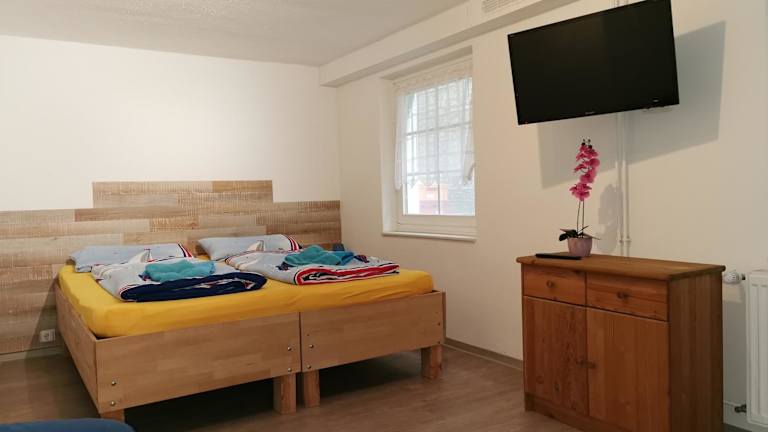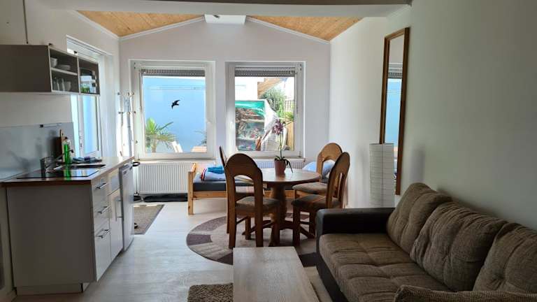 Die Zimmer und Apartments der Pension Kerstin sind komfortabel und gemütlich eingerichtet und bieten den Gästen einen eigenen Eingang, eine Terrasse und eine Klimaanlage. Die Apartments verfügen über einen separaten Wohnbereich mit einer voll ausgestatteten Küche, in der Sie Ihre eigenen Mahlzeiten zubereiten können. Einige der Apartments sind sogar mit einem Kamin ausgestattet, der für eine warme und einladende Atmosphäre sorgt.
