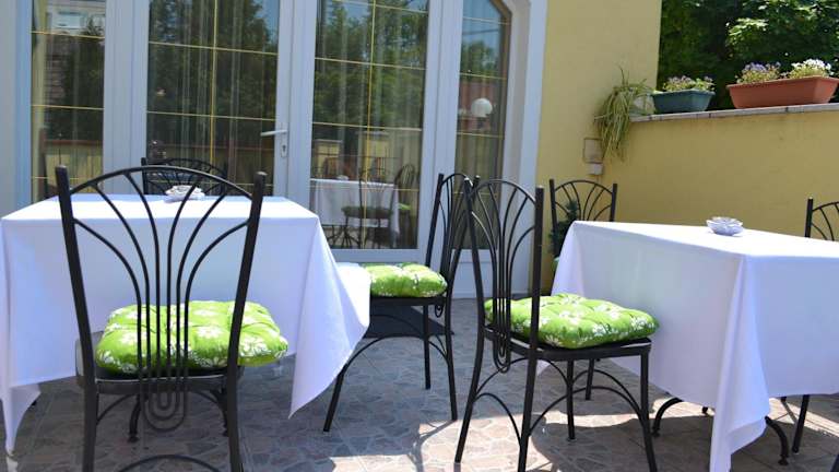 Die Kiskut Liget Pension bietet keine Verpflegungsmöglichkeiten vor Ort. In der Nähe finden Sie jedoch verschiedene Restaurants und Cafés, in denen Sie lokale und internationale Küche genießen können.