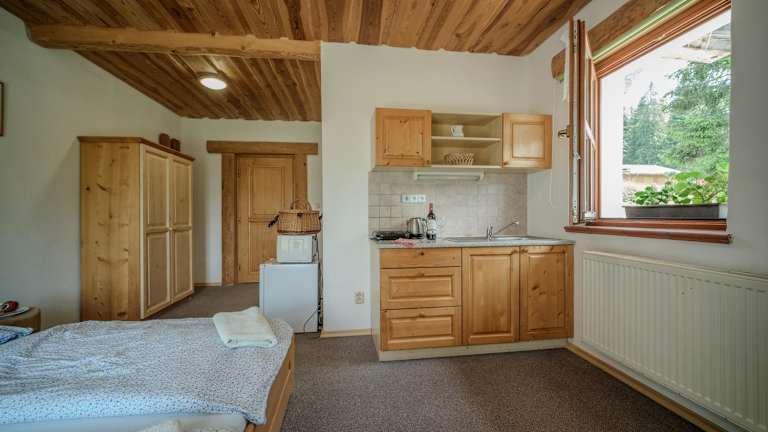 Die Pension Klose befindet sich in der malerischen Landschaft in der Nähe des Waldes Boubín in Šumava. Die Lage bietet eine Vielzahl von Möglichkeiten für Aktivitäten in der Natur, wie zum Beispiel Wandern, Radfahren und Spaziergänge durch den Wald. Strakonice und České Budějovice sind nur eine kurze Autofahrt entfernt und bieten kulturelle Sehenswürdigkeiten, Einkaufsmöglichkeiten und Restaurants.
