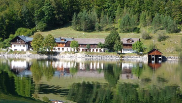 Die Pension Ladner befindet sich in einer idyllischen Lage direkt am Ufer des Grundlsees im steirischen Salzkammergut. Die Umgebung ist von einer atemberaubenden Landschaft geprägt und lädt zu erholsamen Spaziergängen und Aktivitäten in der Natur ein. Ein Naturschwimmstrand ist nur wenige Schritte von der Unterkunft entfernt und bietet die Möglichkeit, sich an warmen Tagen im kristallklaren Wasser des Sees abzukühlen. Wander- und Radwege befinden sich ebenfalls in unmittelbarer Nähe, so dass Sie die Umgebung bequem erkunden können. Eine Bushaltestelle direkt neben der Unterkunft ermöglicht eine gute Anbindung an die umliegenden Orte und Sehenswürdigkeiten.